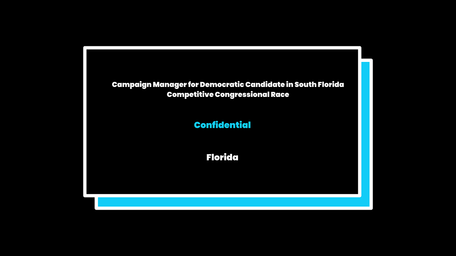Confidential, Campaign Manager for Democratic Candidate in South Florida Competitive Congressional Race