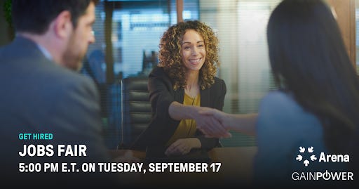 Arena and GAINPower are teaming up for a joint jobs fair on Tuesday, September 17, from 5PM-6PM ET! This is an incredible opportunity to connect with campaigns and movement organizations from across the country. With less than two months until Election Day, they’re still hiring for those crucial last-minute roles that can make all the di…